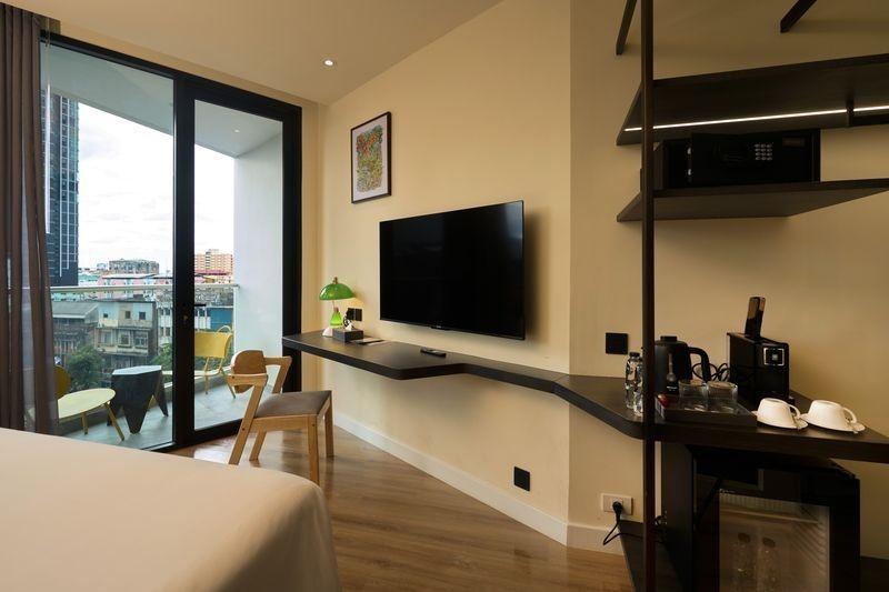 Deluxe Double Room with Balcony The spacious double room features air conditioning, a tea and coffee maker, a terrace with city views as well as a private bathroom boasting a walk-in shower. The unit has 1 bed.